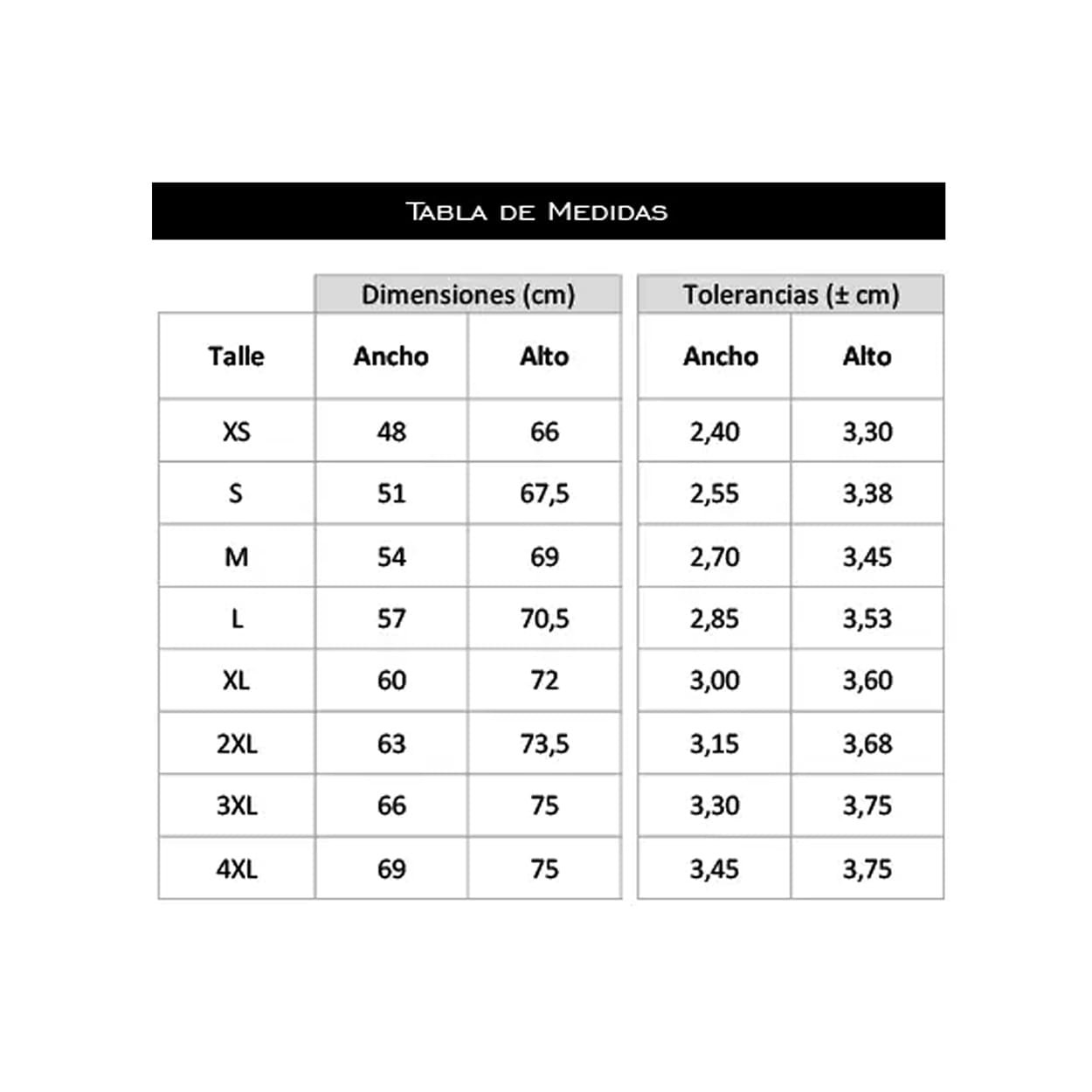 Los precios publicados incluyen hasta talle XXL.