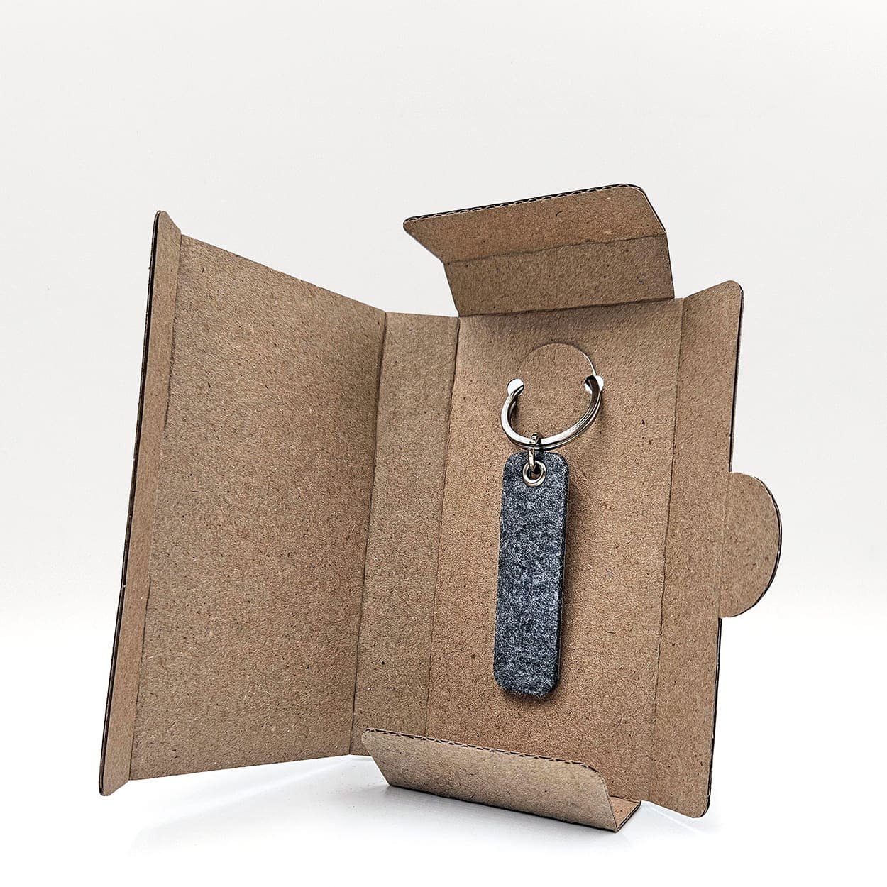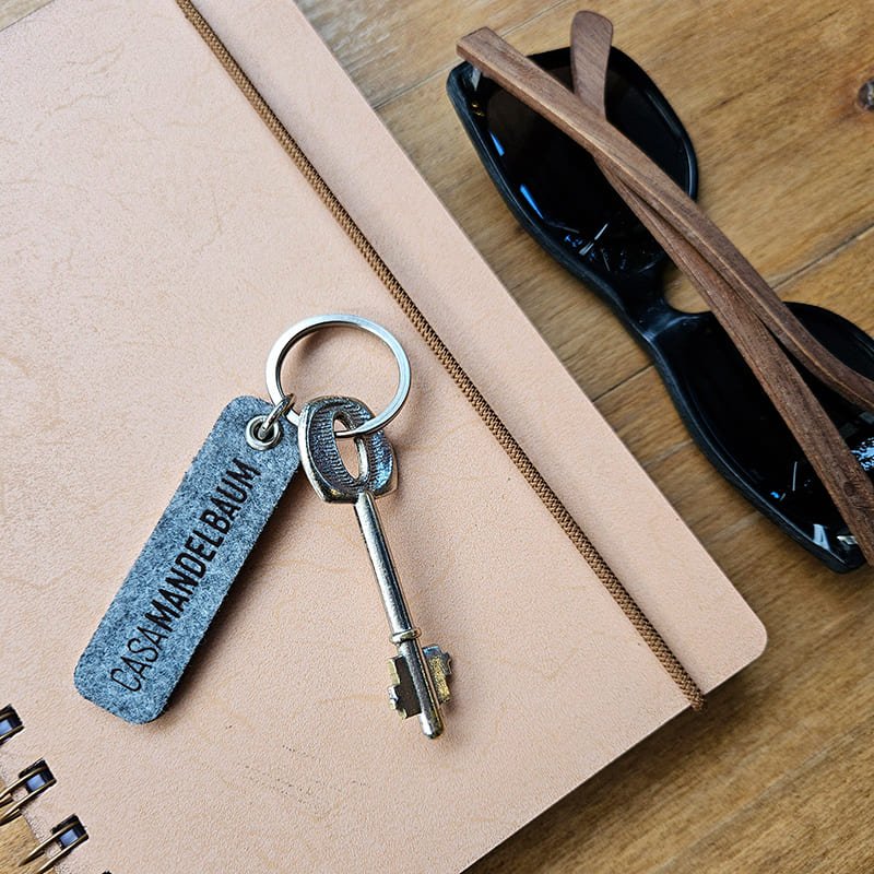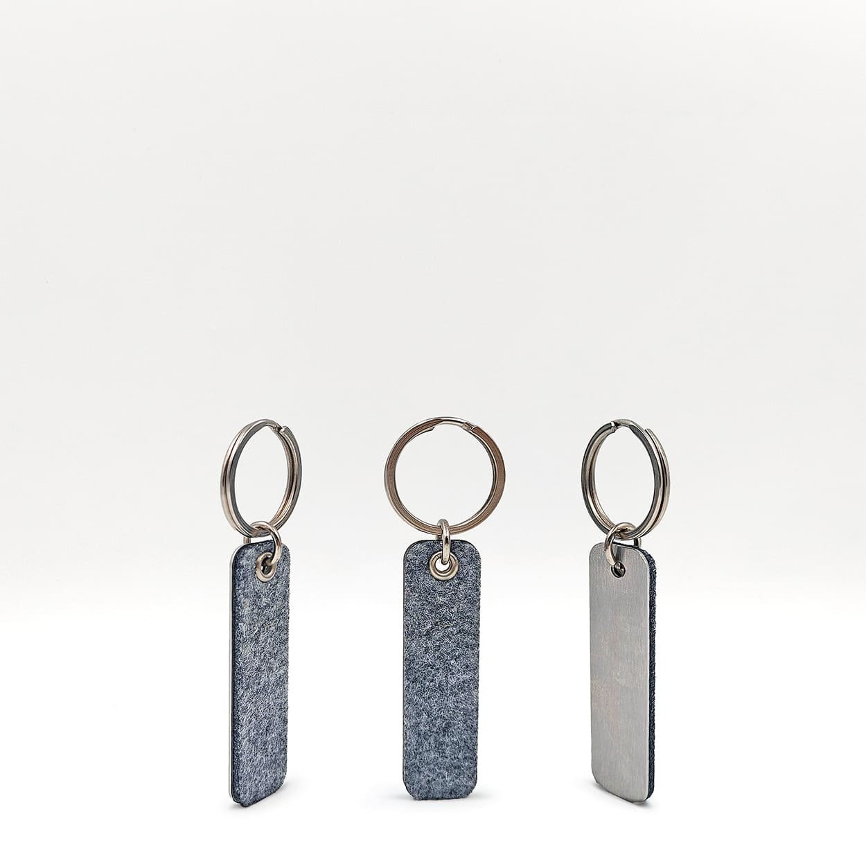 Llavero de acero inoxidable y fieltro. Diseño único e innovador.