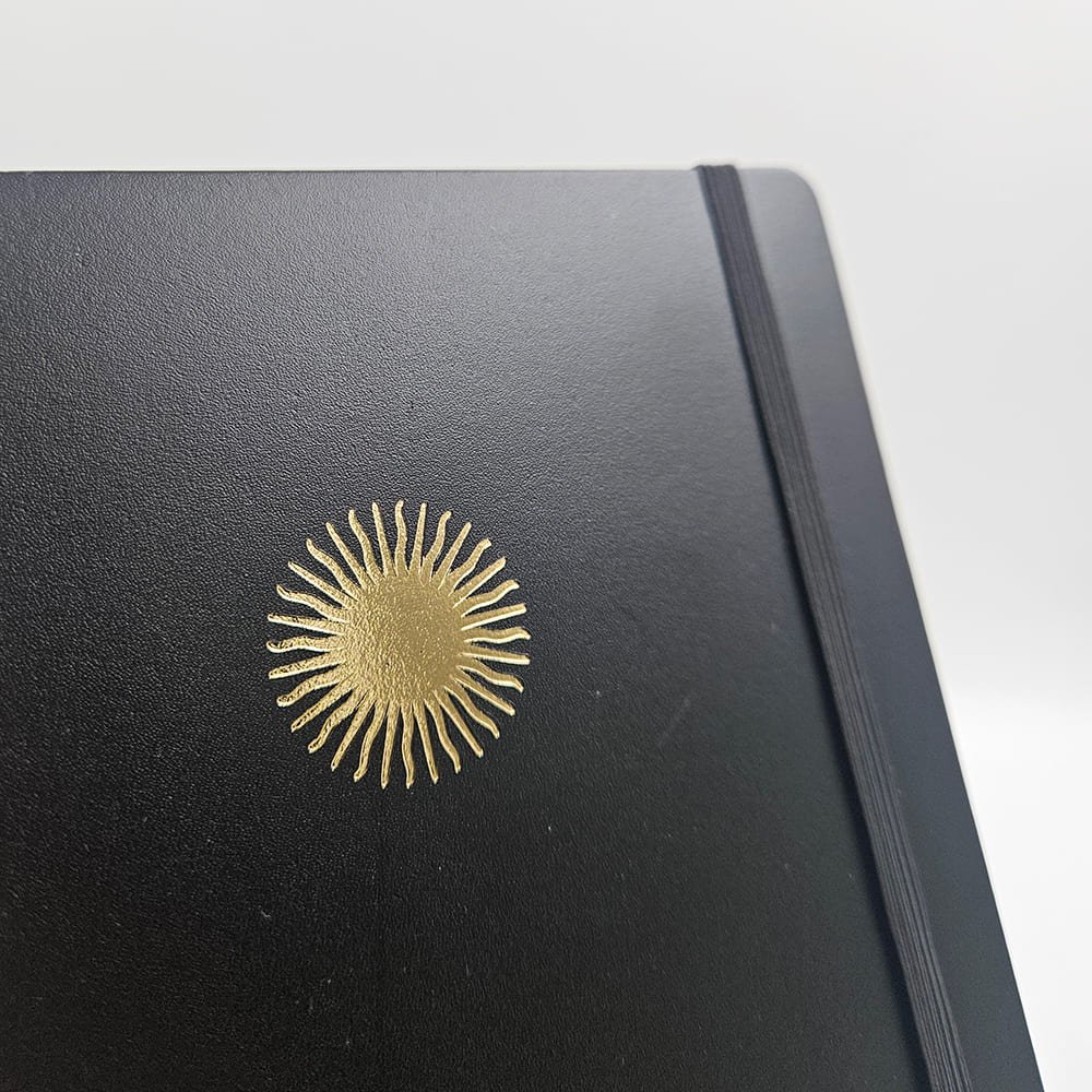Podés elegir la aplicación de tu logo con cuño bajo relieve, una técnica que genera profundidad sobre la tapa y logra un resultado sofisticado, sutil y duradero.
